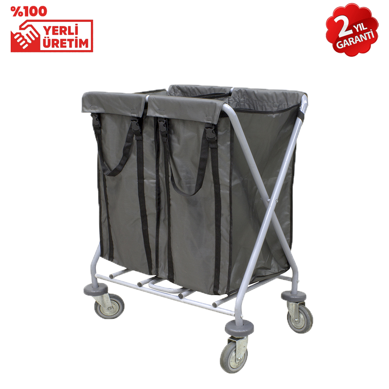 Katlanabilir Kirli Torba Arabası gövde metal malzemeden imal edilmiş katlanabilir çamaşır arabası modelidir. Çıkarılabilir polyester çamaşır torbası mevcuttur 360 derece dönebilen dört adet tekerlek, ikisi fren tertibatlıdır. Tüm metal aksamı elektrostatik toz boya ile kaplanmıştır.